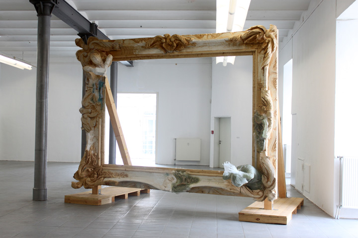 Painted wood, polyester resin