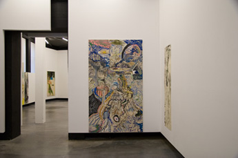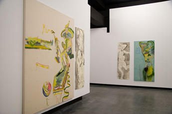 Unter dem Titel »Randerscheinungen« vereint die Ausstellung neueste Gemälde und Zeichnungen des 1975 in Saarbrücken geborenen Malers Johannes Lotz. In seiner künstlerischen Arbeit umkreist Johannes Lotz die menschliche Figur, um sie malerisch entweder zu verorten oder ihr jeden Bezugspunkt zu entziehen. Mal wird sie zur Randfigur einer übersteigerten Umwelt, mal gewinnt sie eine labile Dominanz über den Bildraum, der sich zurückzuziehen scheint wie in ein schwarzes Loch. Hier liegt der Grat, an dem sich die Ausstellung orientiert und der sich im Werk des Künstlers abzeichnet. So sind die Bildflächen bei Johannes Lotz zum Teil vollständig von dynamischen Elementen beherrscht, die an den malerischen Gestus fauvistischer, frühkubistischer und expressionistischer Tradition denken lassen. Die gleichsam aus einem exaltierten Wirbel heraus geborenen Figuren sind lediglich Elemente eines vielstimmigen Raumes. Weite Teile des Bildraums antworten den Figuren auf der Handlungsebene nicht. Sie scheinen in einer zeitlosen, »absurden Einsamkeit« (Johannes Lotz), in eine von ihnen nicht zu kontrollierende Umgebung verwickelt. Diesem Horror Vacui steht eine Ausdrucksform gegenüber, die eine radikale Trennung, einen Bruch zwischen Figur und Lebensraum forciert. In den Gemälden verhalten sich die farbigen Figuren kontrapunktisch zu einem entleerten und fast steril wirkenden Hintergrund. Die Figuren sind isoliert und im Dialog mit sich selbst, eingebettet in eine unbestimmbare Beziehungs- oder Dingwelt. Es sind Motive, die der Welt der Phantasie und Groteske zu entspringen scheinen, um dabei die menschliche Bandbreite und ihre Abgründe zwischen Eros und Thanatos wie in einer gauklerischen Halluzination zu verhandeln. Nach zahlreichen Einzelausstellungen in Hamburg, Köln, Berlin und München widmete im Frühjahr dieses Jahres das Saarländische Künstlerhaus Johannes Lotz eine umfassende Präsentation seiner Arbeit, zu der ein Ausstellungskatalog entstand.